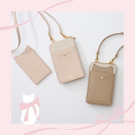 人気アイテムのスマホショルダーは、猫耳シルエットのパスケース付き♪