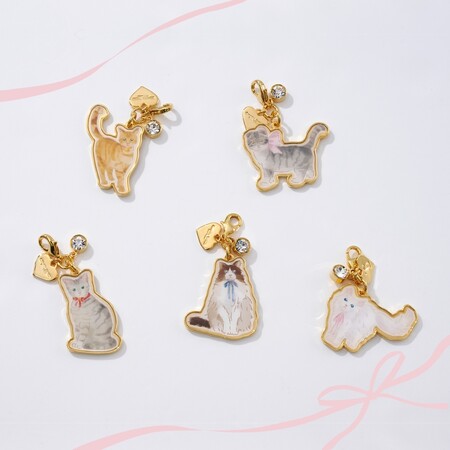 お好きな猫のファスナーチャームを付けて、シリーズをさらに楽しんで♪