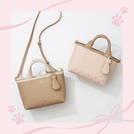 猫の足跡のアートが可愛いトートバッグは、ショルダーベルトがセットされた2Way仕様。