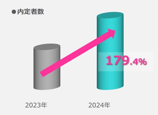 K-POPアーティストスポンサードを開始した2023年と2024年の新卒採用を比較したところ、2024年の内定者数は235名となり、前年比は179.4%となりました。こちらの内定者数はアルテグループの新卒採用数の過去最高値となります。サロン見学者数においても500名を超え、前年比は182.9%となりました。リアル、リモート問わず、サロン見学に参加していただいており、K-POPスポンサードとしてヘアメイクに携わっているアルテグループだからこそ叶うバックヤード見学などにも、美容学生に興味を持っていただけていることがわかりました。