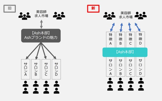 Ashでは、新卒採用に際して美容学校に向けて本社主体で採用活動を行い、一括採用を行っていましたが、2023年より現場主体の美容学生とのマッチングへと採用手法を改革しています。その大きな理由として、新卒であるZ世代の情報収集の変化や働くことに対する考えの多様化があります。