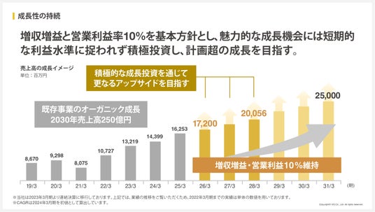 2026年3月期からは、増収増益と営業利益率10%の維持を基本方針とし、魅力的な成長機会に対しては、短期的な利益水準にとらわれず積極的に投資を行うことで、さらなる成長の加速を図ってまいります。