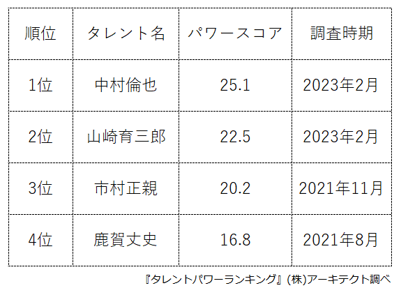 タレントパワーランキングを詳しく知りたい方はこちら↓