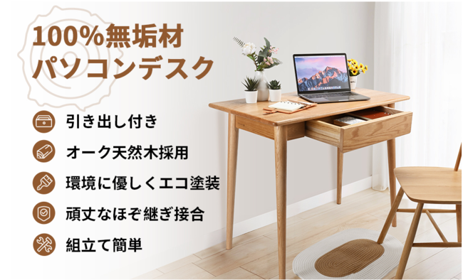 100%オーク天然木 パソコンデスク90cm ※20%OFF