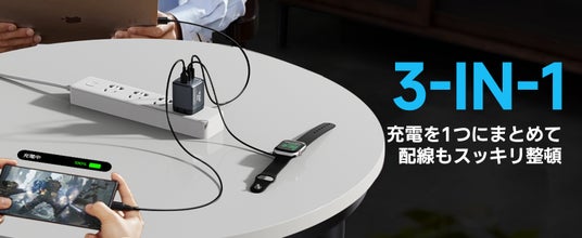 3-in-1設計で複数の充電器が不要になり、整理整頓と効率化を同時に実現します。