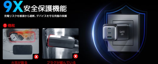 火花の発生や異音を防ぎ、9つの安全保護機能によりデバイスのバッテリー寿命を守ります。