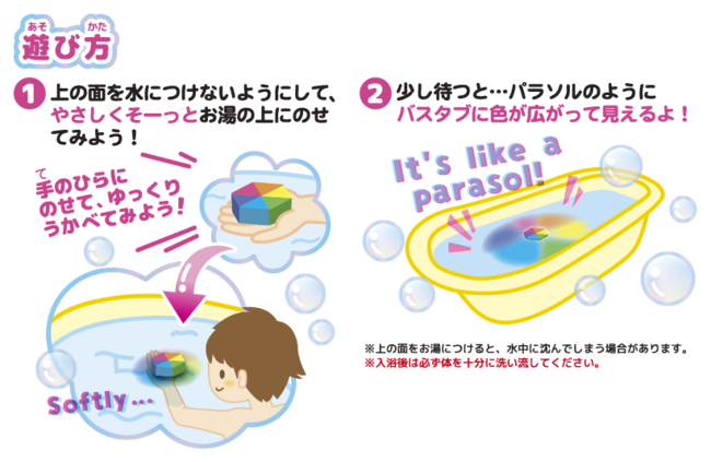 そーっと浮かべると、まるでお風呂にパラソルが開いたみたい!