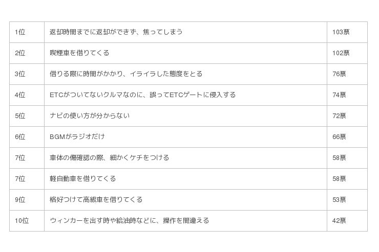『「レンタカーデート」でがっかりしたことランキング』から学ぶ