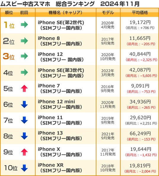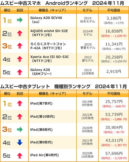 株式会社ウェイブダッシュ(本社:東京都千代田区、代表取締役 下山 一美)が運営するフリーマーケットサイト「ムスビー」(https://www.musbi.net/) の2024年11月の中古スマホ・中古タブレットランキングを発表いたします。