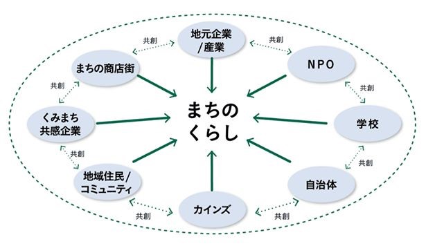 創業以来、「商業を通して社会の発展に貢献する」ことを志に、それぞれの店舗が、それぞれの地域の皆様のくらしに寄り添いながら事業活動を行っている、カインズならではの構想です。店舗やそこで働くメンバー(従業員)がハブとなり、それぞれの地域における困りごとや関心、ニーズに丁寧に耳を傾け、くらしに携わる様々なステークホルダーと協働/共創することで、人々が自立し、共に楽しみ、助け合える、“一人ひとりが主役になれる「まち」(≒地域社会)”の実現を目指します。