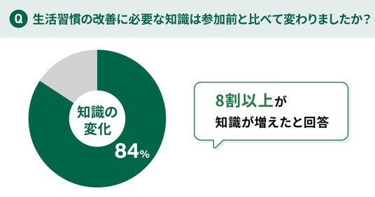 8割以上が「改善に必要な知識が増えた」と回答し、9割以上が「減塩や運動などの生活習