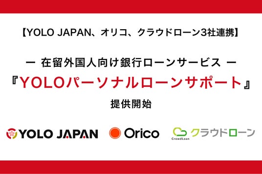 在留・在日外国人向けライフサポートメディアを運営する株式会社YOLO JAPAN(本社:大阪府大阪市、代表取締役:加地 太祐、以下「YOLO JAPAN」)、株式会社オリエントコーポレーション(本社:東京都千代田区、代表取締役社長:梅宮 真、以下「オリコ」)、個人ローンのマッチングプラットフォーム「クラウドローン」を運営するクラウドローン株式会社(本社:東京都新宿区、代表取締役:村田 大輔、以下「クラウドローン」)の3社は、在留外国人向け金融サービスの拡充に向けた連携を開始しました。