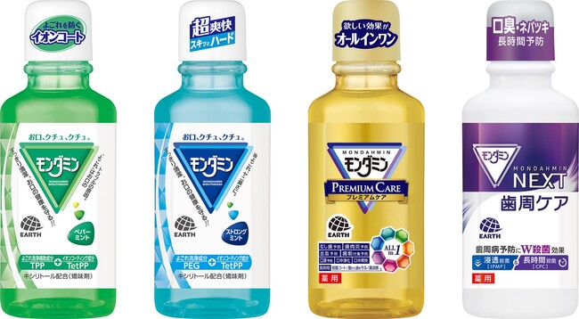 アース製薬は1987年から「全ての世代のお口ケア」を目的に「モンダミン」の開発を行い、日常的な口腔ケアの重要性を長年に渡り啓発してきました。その思いは発売から35年が経った現在も変わらず商品開発を行っています。現在では子ども向けから介護、医科歯科向けなど数多くのラインナップを拡充しています。