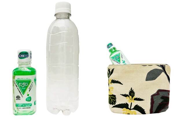 そこで『モンダミン ミニボトル 100mLシリーズ』は、内容量を現行品の80mLから100mLに1.25倍増量しつつ、横幅は52mmから46mmへとスリムで携帯しやすい形状に進化しました。