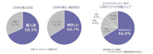 オムニチャネル化が進むコンタクトセンター向けIT市場では、CX(顧客体験)向上の重要性が高まるにつれ、チャネル間での「一貫性のある対応」を実現するために、顧客データベースの重要度が高まっています。コンタクトセンターにおけるCRMの導入状況は高く、今後導入予定の企業も多くなっています。クラウドCRM市場におけるSalesforceのシェアは非常に大きく、モビルスのCXソリューションとSalesforceを利用するユーザーの利便性を向上させる必要がありました。主要クラウドCRMであるSalesforceとのデータ連携強化により、既存ユーザーのみならず今後導入予定のお客さまの業務効率化やCX向上にも貢献することができるものと考えております。