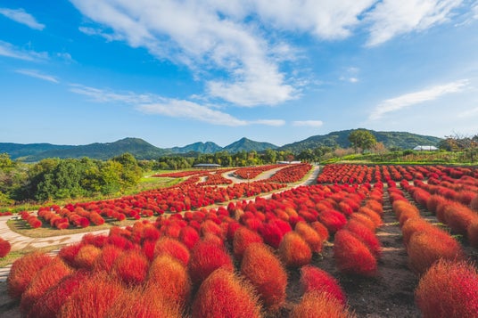 10月中旬~下旬にはコキアの紅葉が見頃を迎えます。