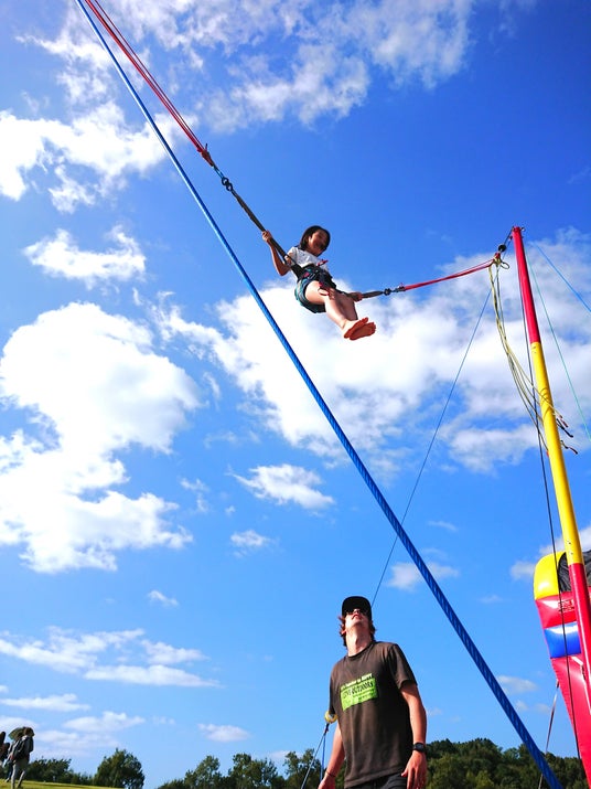 空に向かって高く飛ぶバンジートランポリンはお子様に大人気です!