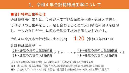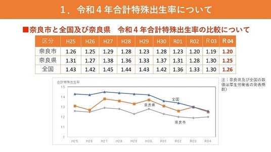 奈良市と全国及び奈良県 令和4年合計特殊出生率の比較について