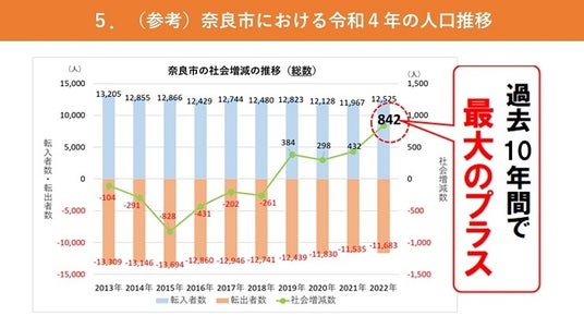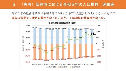 - (参考) 令和5年の奈良市人口推移:過去10年間で2番目。5年連続の社会増。