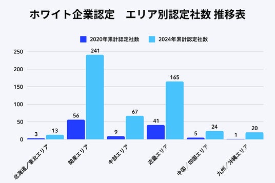 ホワイト企業認定の地域別推移 地方企業での取得が増加傾向