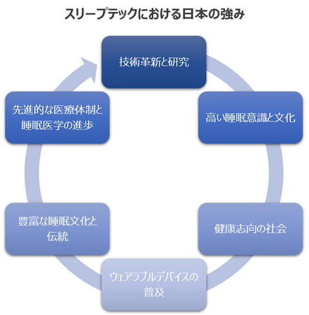 これらの要素が組み合わさり、日本はスリープテックの分野で独自の強みを持っています。睡眠の質と健康への取り組みをサポートし、新たなイノベーションやソリューションの創造に向けて、日本のスリープテックは大いなるポテンシャルを秘めています。