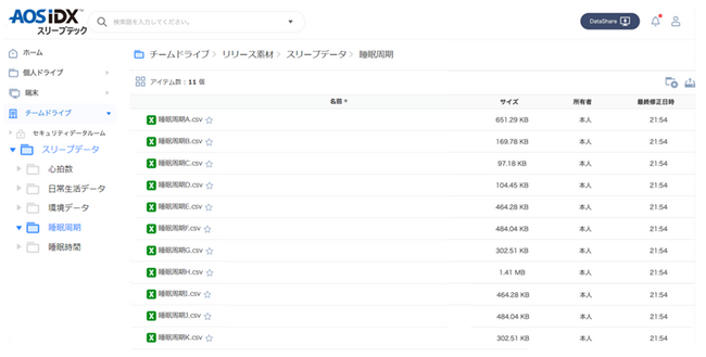 「スリープデータプラットフォーム AOS IDX」は、厳格かつ柔軟なアクセス権限管理機能や、ドキュメントへの検索用メタデータ付与によるデータ検索性の強化、AIデータ活用に向けたマルチモーダルAIへの対応、ファイルビューアー機能、暗号化および監査機能、バックアップ機能、および大容量長期保管向けアーカイブシステム機能を備えています。AOS IDXは、スリープテック業界に携わる企業や自治体向けに設計されたクラウドストレージのSaaSです。