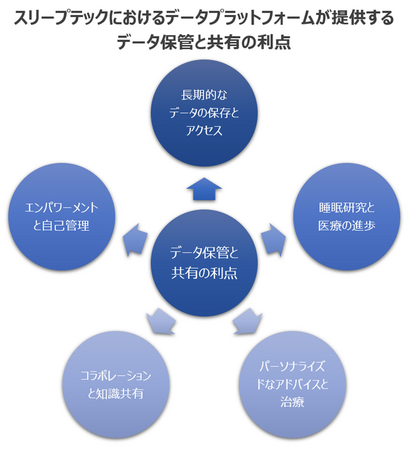 さらに、データプラットフォームによるデータの保管と共有は、パーソナライズドなアドバイスや治療の提供、コラボレーション、ユーザーのエンパワーメントと自己管理を可能にし、個々のユーザーの睡眠の質と健康への取り組みを支援します。データプラットフォームの導入により、睡眠データの効果的な利活用が実現され、よりパーソナライズドされた効果的な睡眠ケアを提供ができるようになります。