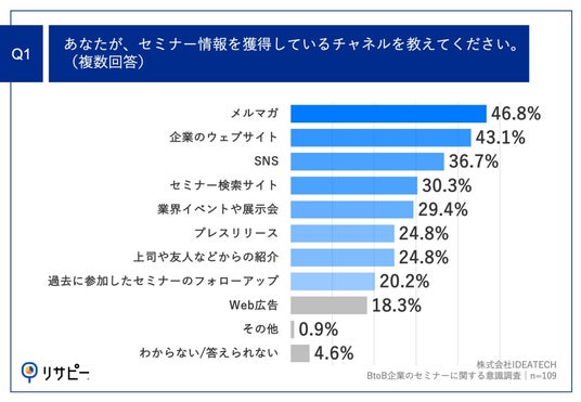 Q1.あなたが、セミナー情報を獲得しているチャネルを教えてください。(複数回答)