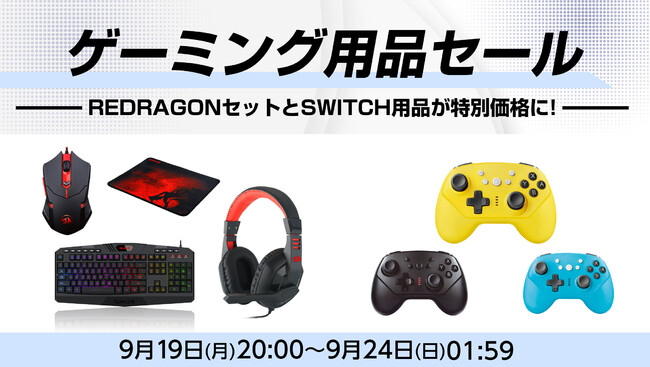 楽天市場「Show !t」は9月19日20:00~9月24日01:59まで開催される、楽天お買い物マラソンに参加し、SWITCH向けワイヤレスコントローラーとPCゲーム向けのREDRAGONウスやマウスパッド、ヘッドセット、キーボードなど、スターターセットをセール価格で販売します。ポイント10倍プレゼントのこの機会に、ゲーム用品を揃えて秋の夜長をゲームをして楽しみましょう。