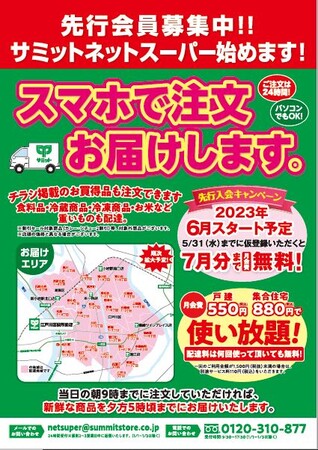 サミットストア江戸川区役所前店は、2023年6月より、「サミットネットスーパー」を開始します。スマートフォンやパソコンからご注文いただいた商品を、サミットの従業員がお客様の代わりにサミットの店舗で商品を選定し、お客様のご自宅にお届けします。