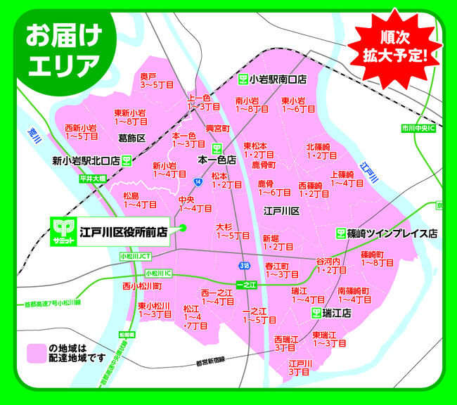 ●お届けエリア(東京都江戸川区、葛飾区の以下の地域)