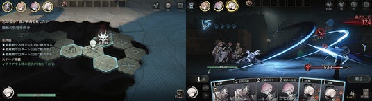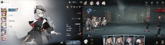 ▲【開発中画面】左:キャラクターのステータス画面 右:バトル画面