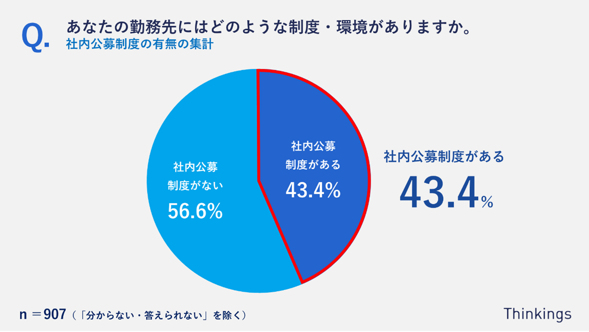 ・勤務先に社内公募制度があると答えた割合は43.4%※とおよそ4割です。