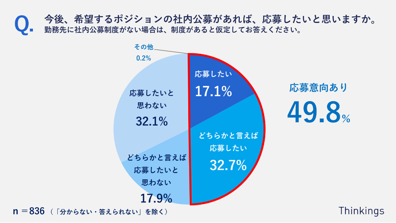 ⇒およそ半数は今後、「希望するポジションの社内公募があれば応募したい」と考えています。