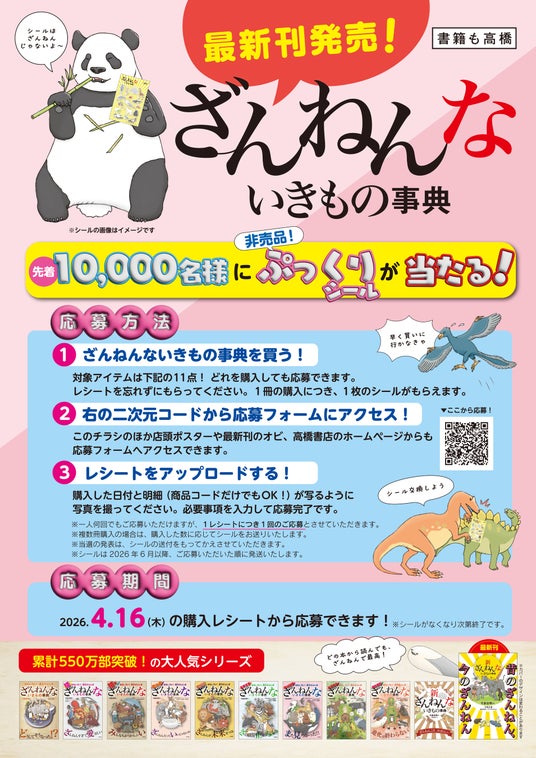 株式会社高橋書店(本社:東京都豊島区、代表取締役:清水美成)は、2026年4月20日に、「ざんねんないきもの事典」シリーズ最新刊で第11弾となる『新ざんねんないきもの事典 昔のざんねん、今のざんねん』(監修:今泉忠明)を全国の書店・オンラインストアで発売予定です。
