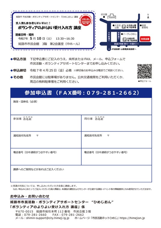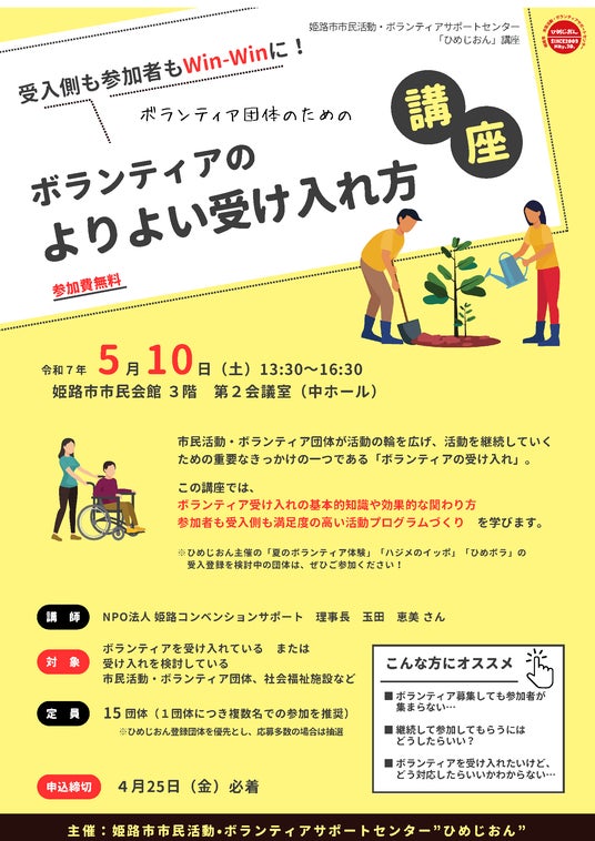 令和7年度市民活動・ボランティアサポートセンター“ひめじおん”講座の参加者を募集します。