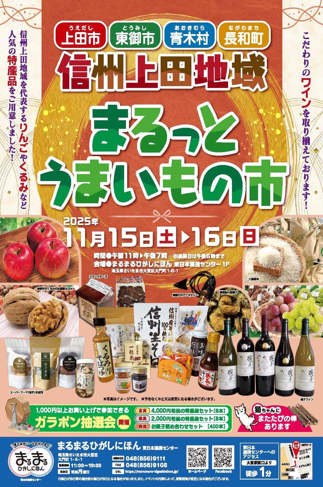 まるまるひがしにほんでは、11月15日(土)・16日(日)に「信州上田地域まるっとうまいもの市」を開催します。