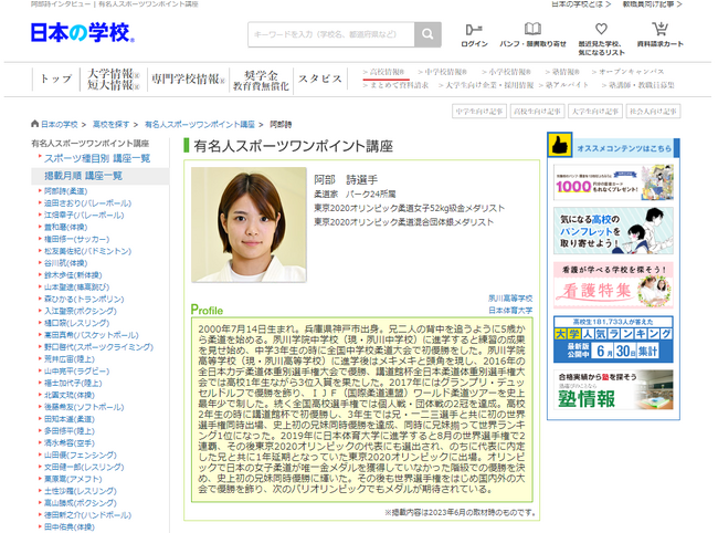 全国の大学・短大・専門学校などの学校情報を提供する、株式会社JSコーポレーション(本社:大阪市北区 代表取締役社長:米田英一)は、スポーツワンポイント講座「柔道/阿部詩選手」(https://school.js88.com/scl_h/onepoint-advice/sport?item=5&athlete=211)」を公開しました。