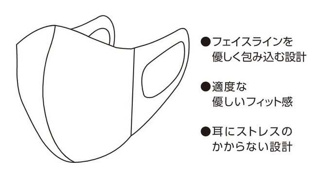 本体には、水着や陸上ウエアで使用している伸縮性に優れた2wayストレッチトリコット素材を使用しています。内側にはミズノ独自の肌触りの良いソフトな素材を使用し、フェイスラインを優しく包み込む設計のため、顔にフィットし、ストレスが少なく、飛沫拡散を抑制します。繰り返し手洗い洗濯が可能です。