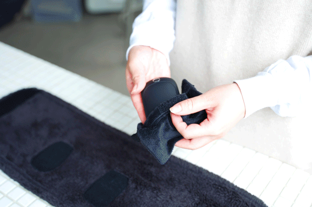 ボアウエストウォーマーは、幅の広いマジックテープを使用し、装着時の調整がしやすい設計になっています。