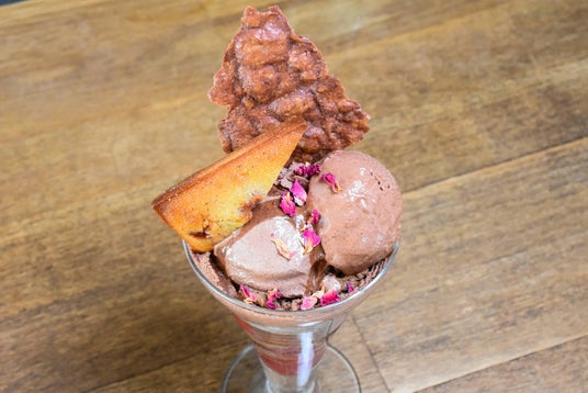 フィリピンとマダガスカル、産地違いの2種のチョコレートアイスを食べ比べながら、苺とブロンドチョコレートのフィナンシェや、コロンビア産カカオ豆を使ったチュイールとアイスの組み合わせをお楽しみください。