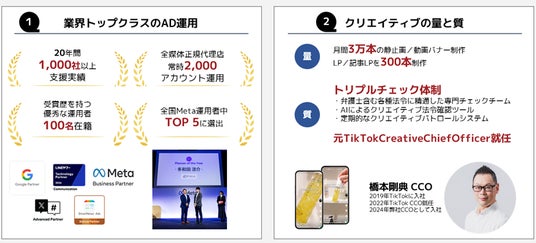 このたびの『Result+』のリニューアルは、当社が20年間で培ってきた広告運用・クリエイティブ制作・データ基盤・インフルエンサー施策の4つの領域を一体で扱える体制が基盤となっています。