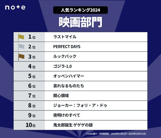 2024年にnoteで話題になった映画・ドラマのランキングを発表しました。