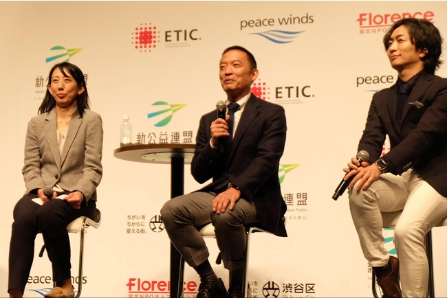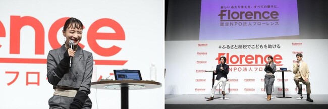 フローレンス会長 駒崎弘樹、JOYさん、わたなべ麻衣さんがステージに登壇。11月1日から始まる「#ふるさと納税で子どもを助ける」をテーマに、トークセッションを展開しました。