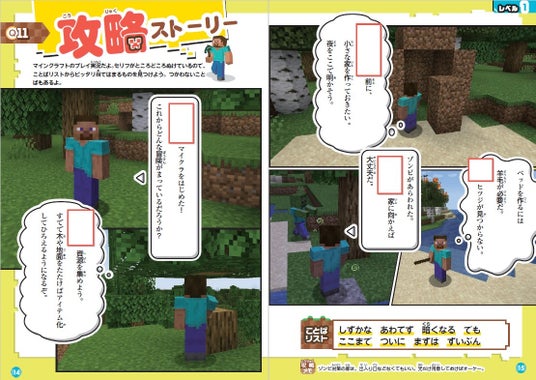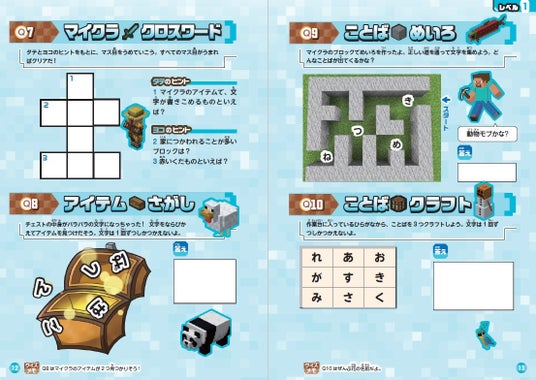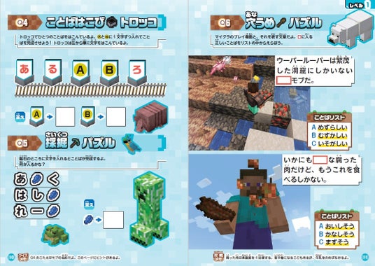 「マインクラフト」はいま子どもに大人気のゲームソフト。仮想空間での冒険や、ブロックを使った建築を楽しむことができます。本書は、大人気ゲーム「マインクラフト」のキャラクターや世界観の中で、子供たちがパズルやクイズを楽しみながらことばの力を身につけることができます。
