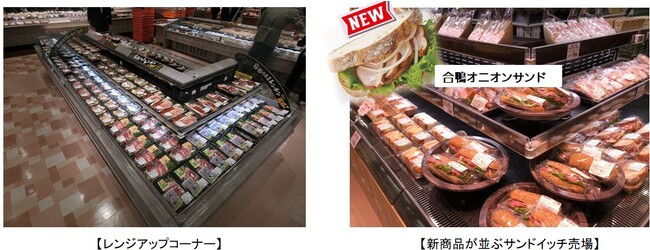ベーカリー売場においては、ごまの香ばしさが香る全粒粉パンを使用した「合鴨オニオンサンド」や肉の旨みがギュッと詰まったピリ辛な「本格!タコスミートトルティーヤ」等、新商品を多数取り揃えました。