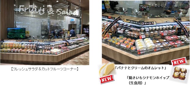 新設したコーナーでは、店内で販売している素材を使ったピクルスや野菜スティックなど、店内で手作りしたフレッシュサラダや旬なくだものを盛り込んだカットフルーツを多く取り揃えます。また、サミットオリジナルの北海道牛乳を原料とした手作りの杏仁豆腐に加え、川口青木店から品揃えを開始したバナナオムレットなど、店内で手作りしたスイーツも揃えました。