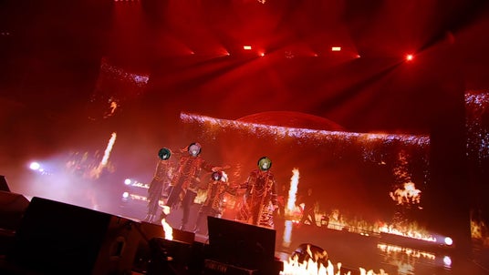 ファイヤーボールやラインバーナーの炎が上がり赤いライトに染まったステージで、パフォーマーが表現する荒ぶる龍神と対峙するメンバー。唯一無二の圧倒的な歌唱力とステージ全体を巻き込んだ圧巻のパフォーマンスは必見です。