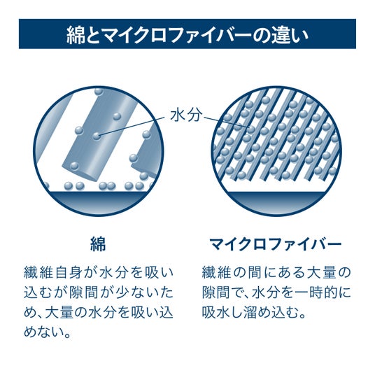 水に触れた瞬間、サッと吸水してくれます。その吸水力はなんと綿のタオルの約3.6倍!