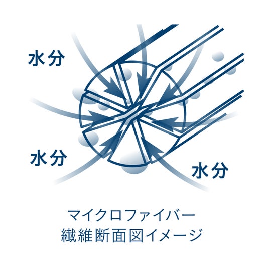 マイクロファイバーは、1本1本が放射線状の三角断面形状で無数の隙間を持っています。